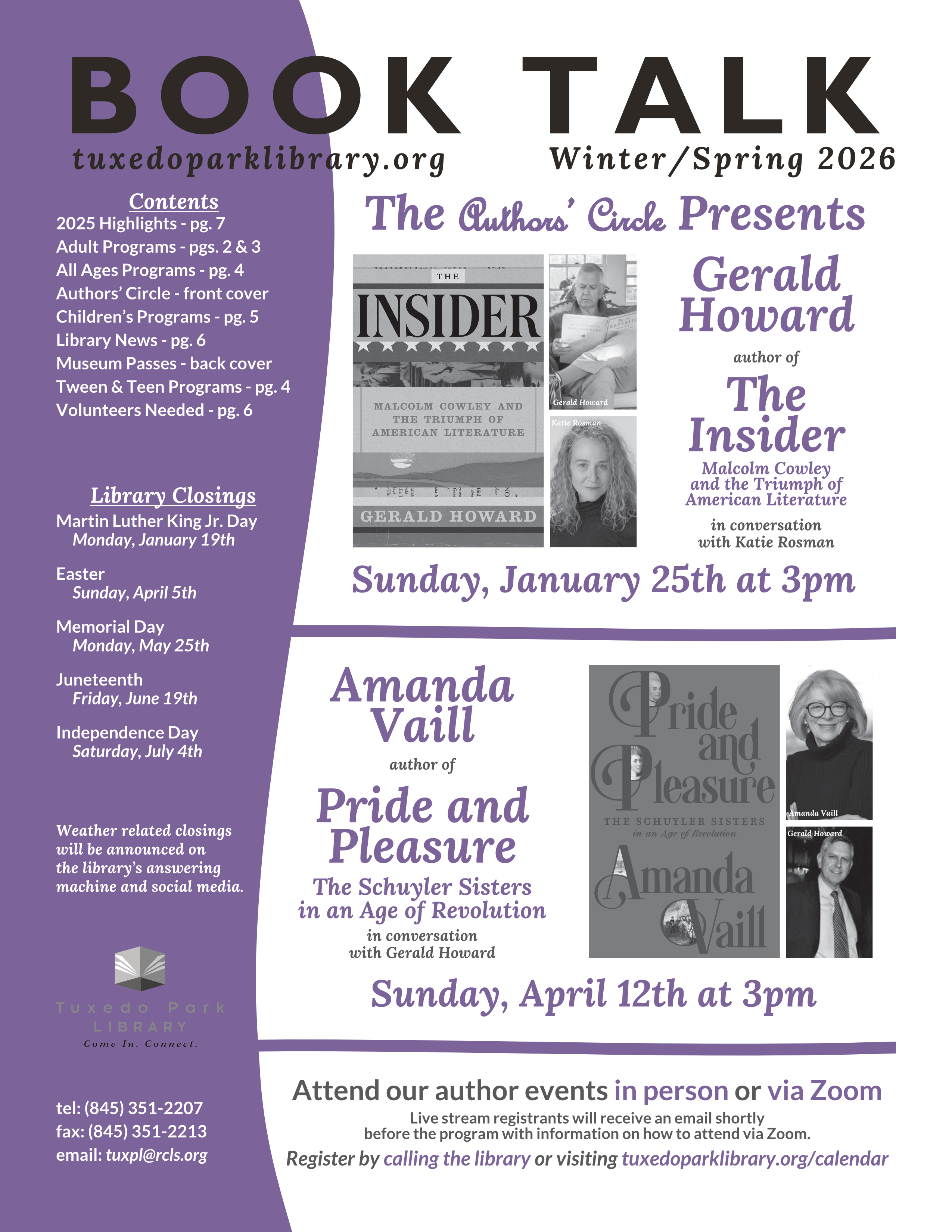 Unfortunately, The Authors’ Circle with Gerald Howard that was scheduled for Sunday, January 25th has been postponed. Click here for details.