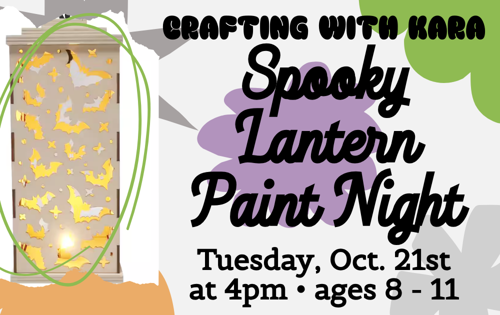 Tuesday, October 21st at 4pm Ages 8 – 11 A special craft night just for tweens! Tweens can enjoy a night in being creative. Snacks will be provided. Register by clicking here or calling the library.