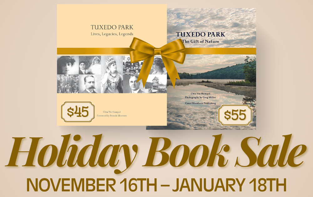 Nature is what truly distinguishes Tuxedo Park from other towns in the New York metropolis. This book showcases over 200 breathtaking photographs by renowned Hudson Valley photographer Greg Miller, highlighting the beautiful landscapes and extraordinary biodiversity of Tuxedo Park. Our village is home to over 450 species of plants, 150 species of butterflies and moths, and nearly 200 species of birds and mammals, with lakes and feeder streams that teem with life year round. Hardcover, 240 pages.