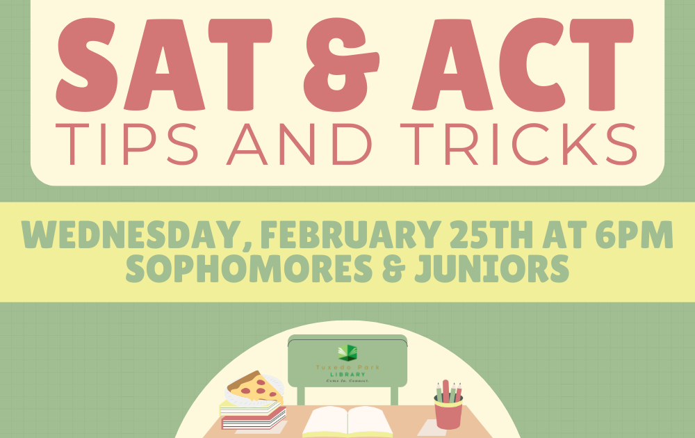 Nervous about standardized tests? Join us at the library for this SAT and ACT presentation that will get you ready just in time for test season. Pizza will be served.